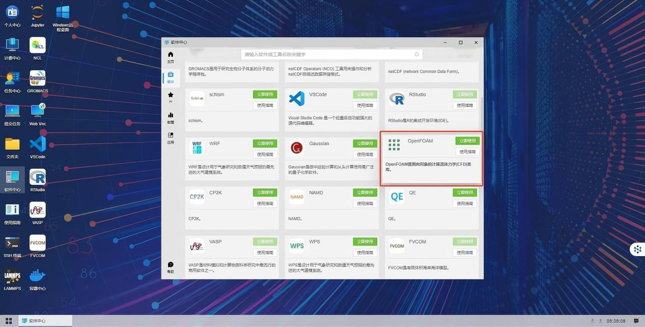 2.2 在软件中心的软件中搜索并安装OpenFOAM软件