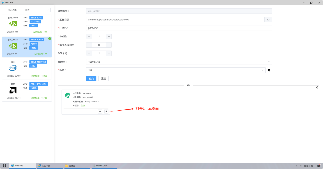 2.3 在软件中心的应用中搜索并安装Web Vnc并提交任务