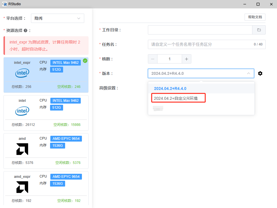若提交Rstudio作业时,选择的是2024.04.2+自定义R环境